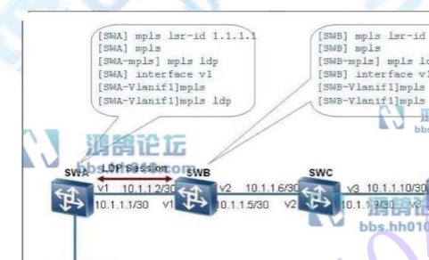 单选题 在网络中配置了 MPLS LSP, 并在 SWA 和 SWB 之间实现本地 LDP 会话,正确的是