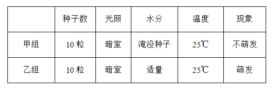 单选题 如表是某同学“探究大豆种子萌发的环境条件”的实验记录表。10天后,甲组种子都没有萌发,最可能的原因是